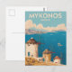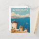 Mykonos Greece Illustration Travel Art Vintage Postcard