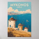 Mykonos Greece Illustration Travel Art Vintage Poster