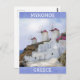 Anyone would love to receive this Greek Islands travel postcard featuring a watercolor illustration of the windmills in Mykonos, Greece!