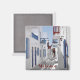 Square magnet with an image of a watercolor painting of a quaint cobblestone lane on the island of Mykonos, a Greek island, part of the Cyclades, lying between Tinos, Syros, Paros and Naxos. See matching square marble stone magnet. See the entire Greece Magnet collection in the HOME section.