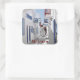 Square sticker with an image of a watercolor painting of a quaint cobblestone lane on the island of Mykonos, a Greek island, part of the Cyclades, lying between Tinos, Syros, Paros and Naxos. See matching postcard. See the entire Greece Sticker collection in the CARDS, POSTCARDS & STICKERS section.
