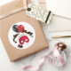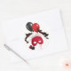 Round sticker with an image of a red feathered mask, red and black balloons, a ruby heart, and a black sequined heart. See matching custom-cut vinyl sticker, confetti, favour bag, favour box, favour tag, gift bags, label and wrapping paper. See the entire Cancan Sticker collection in the INVITES | Stickers & Labels section.