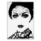 This black and white image of a lady with one blue eye is quite mesmerising. The image has a Gothic feel to it with her Goth make up and what you can make out of her gorgeously designed top. This card would be perfect for a number of occasions from a simple thank you to a happy birthday. The inside has been left blank, but you can customise it to add a typed message to it before ordering.