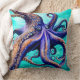 Mysterious Octopus Blue Ocean Wave Abstract Art Cushion