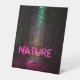 Digital composition of my own photograph with an added neon sign nature in magenta colour with glow and lighting all around the forest.