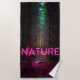 Mysterious spruce forest nature neon magenta sign beach towel