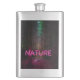 Mysterious spruce forest nature neon magenta sign hip flask