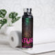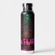 Mysterious spruce forest nature neon magenta sign water bottle