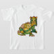 The t-shirt feels and looks great quality, a good thick cotton. It will be a little big for my son, but that means he will be able to wear it and not out grow it too soon. The print was as described on the order when personalised. True size, shape and colour T-shirt- thanks.
