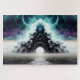 In this enigmatic artwork, the viewer is transported to an otherworldly realm that seems to defy reality. The artist masterfully employs a rich palette of black, purple, and green hues, creating an ethereal atmosphere that exudes a sense of mystery and wonder. The scene is shrouded in an eerie fog, which blankets the landscape and envelopes the viewer in a cloak of uncertainty and intrigue.