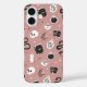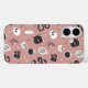 A spooky chic phone case featuring a pattern of snakes, mystical crystals, potions, spellbooks, candles, jars, skulls, tarot cards, and potions on a dusty rose blush pink background.