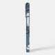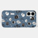 A spooky chic phone case featuring a pattern of snakes, mystical crystals, potions, spellbooks, candles, jars, skulls, tarot cards, and potions on a smoky blue background.