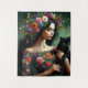 Bring enchantment to your space with this stunning fantasy art print featuring a graceful dark-haired woman adorned in vibrant flowers and holding a sleek black cat. Set against a rich green textured background, the composition blends elegance, nature, and mysticism in a single breathtaking image.