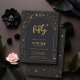 A modern, elegant and celestial 50th birthday party invitation template with a tarot, fortune teller theme, featuring a double, gold boho arch frame and astrology and tarot elements: the sun, the moon, the chalice, constellations, stars... A fun astrology, horoscope, zodiac themed 50th birthday party invitation design for a modern woman on her fiftieth birthday. A lovely choice for a fun party of palm reading, fortune telling, horoscope gazing and other fun and mystical activities.