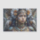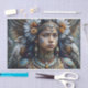 This regal portrait marries mystical elements with ornate detail. The composition features intricate jewellery in turquoise and gold, paired with majestic eagle companions. The colour palette moves from deep teals to burnished golds, with white feather accents and rich earth tones creating dramatic contrast.