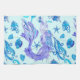 Beautiful, Weird, Purple and Turquoise Fairy Ocean Creature, this Mermaid is Swimmingm and looks like playing, surrounded by Starfishes, sea shells, seaweed, Fishes, and holding a little Seahorse on her hand; all the elements are assembled to compose a seamless Pattern. Vector Illustration Copyright BluedarkArt.