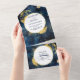 Mystic Midnight Blue and Gold Watercolor Wedding All In One Invitation