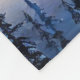 A beautiful Sherpa blanket displays a magical cabin under a snowy, purple sky.