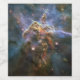 In the heart of the Carina Nebula, a tempestuous stellar nursery 7,500 light-years away, lies a cosmic battlefield known as Mystic Mountain. This colossal pillar of gas and dust, stretching three light-years high, appears to be locked in an eternal struggle. On one side, relentless winds and scorching radiation from neighbouring, monstrously hot stars relentlessly erode the mountain's form. Imagine cosmic sandblasting on a scale so immense it could reshape mountains! But Mystic Mountain holds a secret weapon. Deep within its swirling folds, invisible to our eyes, lie embryonic stars, stellar infants just beginning their fiery journey. These hidden newborns, fuelled by the very dust they're embedded in, fire off powerful jets of gas that streak outwards like celestial exhaust. These jets, a testament to the raw power of stellar birth, carve and sculpt the mountain from within, adding another layer to this dramatic cosmic dance. The Hubble Space Telescope, our keen astronomical eye, captures this breathtaking scene, a constant reminder of the fierce beauty and relentless activity that forge new stars in the vast expanse of the universe. - This file is in the public domain in the United States because it was solely created by NASA.