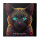 Mystic Neon Mandala Cat Psychedelic Feline Fantasy Tile