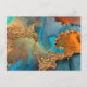 Gorgeous abstract teal and coral with rich gold marbling on left and right corners. Templates created on white background. Enlarged, full image on reverse side.