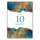 Mystical Abstract Teal Coral Gold Wedding Table Number