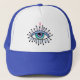 Show off your mystical style with this All-Seeing Eye trucker hat featuring a hand-drawn design in teal, pink, lavender, and blue. The eye radiates with bursting eyelashes that resemble rays of light. The background is white, and the cap comes in a variety of colors, with royal and white shown here. This hat is perfect for adding a touch of intuition and spiritual energy to your everyday look, and it’s especially great to wear to spiritual festivals and yoga events!