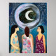 Embrace the Moon's Energy. Three abstract women looking at the moon AI art. generativecontent