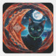 Mystical Black Cat Celestial Mandala Square Sticker