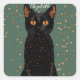 Mystical Black Cat with Orange Eyes and Glitter Square Sticker