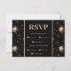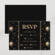 Mystical Black Gold Celestial Galaxy Wedding RSVP Card
