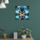 Mystical Blue Dragon Looking at Reflection in Wate Poster