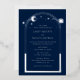 Mystical Blue Silver Sun Star Moon Astronomy Space Foil Wedding Invitations features sun, moon and stars with a silver foil frame on a blue background. Inside is your custom wedding invitation information. Personalise by editing the text in the text boxes. Designed for you by ©Evco Studio www.zazzle.com/store/evcostudio