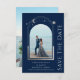 Mystical Blue Silver Sun Moon Star Space Astronomy Cosmic Galaxy Wedding Save The Dates features a silver sun, moon and stars frame on a blue background. Inside is your favourite photo and your custom save the date information. Add an additional photo on the reverse. Personalise by editing the text in the text boxes. Designed for you by ©2022 Evco Studio www.zazzle.com/store/evcostudio