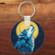 Mystical Blue Wolf Howling at a Full Moon Key Ring
