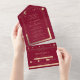 Mystical Burgundy Sun Star Moon Astronomy Space All In One Wedding Invitations features gold sun, moon and stars with a gold coloured frame on a burgundy background. Inside is your custom wedding invitation information. Below is the removable RSVP card with three meal choice options for you guests to remove and return. Personalise by editing the text in the text boxes. For additional number of meal choice options with this design please visit our store and view our collection. Meal type can be changed by simply editing the text in the personalise this design section. Designed for you by ©Evco Studio www.zazzle.com/store/evcostudio