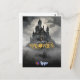 Capture the spirit of Halloween with this mystical castle postcard. Featuring a towering gothic castle surrounded by mist under a moonlit sky, the grayscale background contrasts with bold golden lettering for a hauntingly elegant effect.