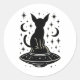 Mystical Cat on UFO with Stars & Moons Classic Round Sticker