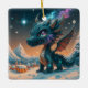 Mystical Chibi Dragon Winter Landscape Ceramic Ornament