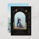 Mystical Chic Black Gold Sun Moon Star Space Save The Dates features a gold sun, moon and stars frame on a black background. Inside is your favourite photo and your custom save the date information. Add an additional photo on the reverse. Personalise by editing the text in the text boxes. Designed for you by ©2022 Evco Studio www.zazzle.com/store/evcostudio