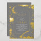 This enchanting wedding invitation sweeps your guests into a breathtaking nightscape, shimmering with magic and romance. A glowing crescent moon, a radiant shooting star, and distant constellations, all delicately detailed in luxurious real gold foil, create a scene straight from the heavens.