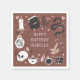Planning a fortune teller, gypsy, or Halloween themed birthday party? Accessorise with these spooky chic personalised napkins in a boho nature inspired colour palette. Design features illustrations of a snake, spellbook, candle, jar, skull, tarot cards, and potion surrounding your custom text.