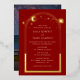 Mystical Dark Red Gold Sun Moon Stars Astronomy Space Photo Foil Wedding Invitations features sun, moon and stars with a gold frame on a dark red background. Inside is your custom wedding invitation information. Personalise by editing the text in the text boxes and adding your favourite photo. Designed for you by ©2022 Evco Studio www.zazzle.com/store/evcostudio