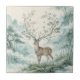 Elegant watercolor artwork ceramic tile featuring a graceful spotted deer with branch-like antlers, bamboo leaves, butterflies, and a misty forest landscape. Ideal for nature lovers, fantasy art fans, woodland enthusiasts, and anyone who loves peaceful East Asian inspired aesthetics.