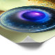 Beautiful AI rendered digital art print features a magical, mystical scene featuring gold and blue enamel bowls and decanters with an exotic background.