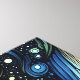 Mystical ai art with a swirling blue and orange sky with silhouettes of pine trees.