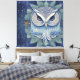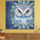 This whimsical fantasy forest owl is depicted as a magical and mystical creature, with it's piercing yellow eyes and unique feather pattern. It is set on a background of winter foliage and enchanting, sparkling stars amongst the night sky.