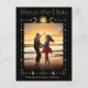 elegant mystical gold script black background qr code photo save the date Announcement Postcard