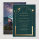 Mystical Green Gold Sun Moon Stars Photo Wedding Invitation