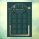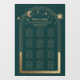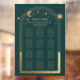Mystical Green Gold Sun Moon Stars Astronomy Celestial Cosmic Galaxy Space Wedding Seating Chart Window Cling features a gold sun, moon and stars frame on a green background. Inside the frame is the text "Welcome" in elegant gold calligraphy script and your custom wedding reception seating chart information. Personalise by editing the text in the text boxes provided. Designed for you by ©2022 Evco Studio www.zazzle.com/store/evcostudio
